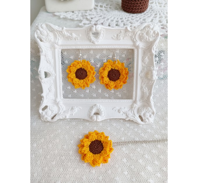 Crochet Sunflower PATTERN. Pattern for jewelry. Easy crochet.